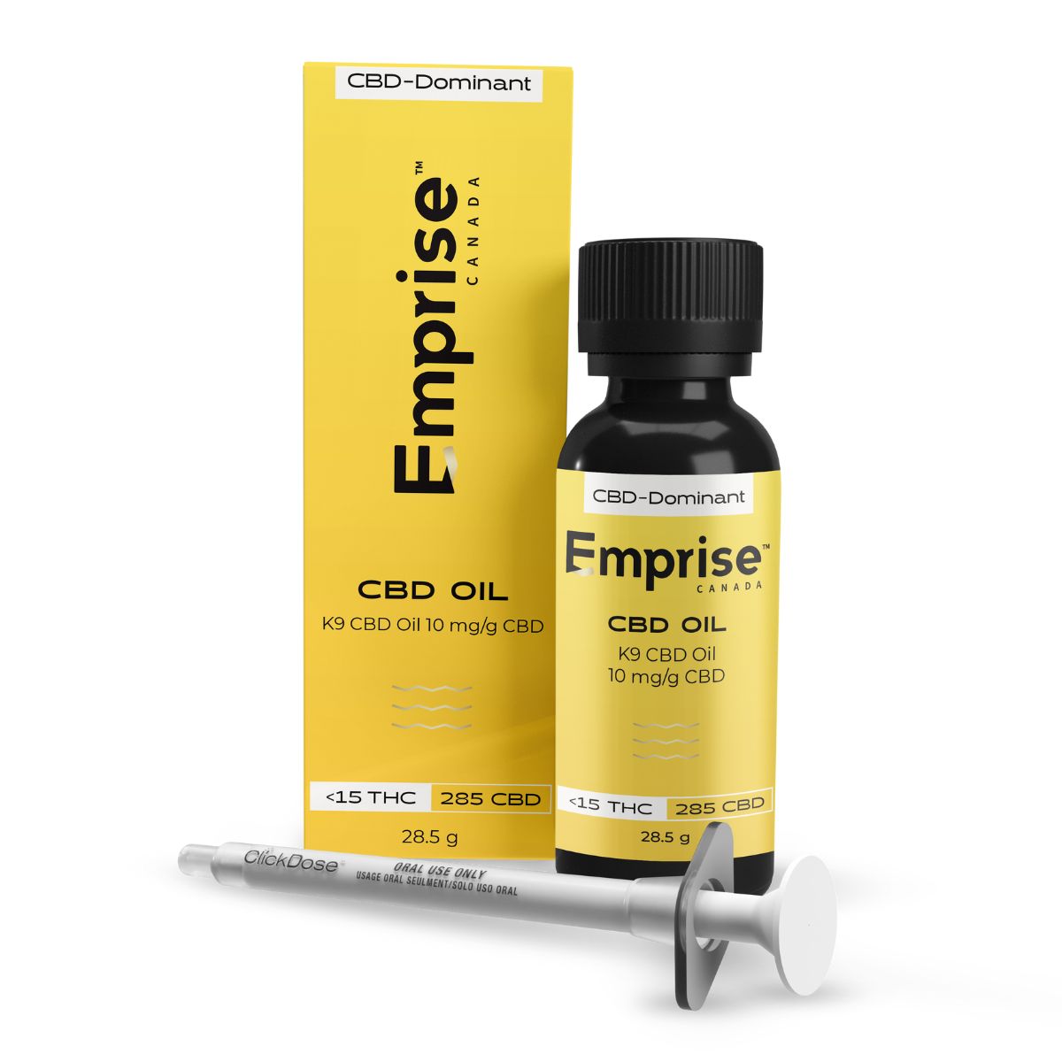Each bottle contains 30 ml (28.5 g) of K9 CBD Oil (285 mg of CBD). A syringe with 1 ml capacity is also included. One syringe dose delivers 9.5 mg of CBD.